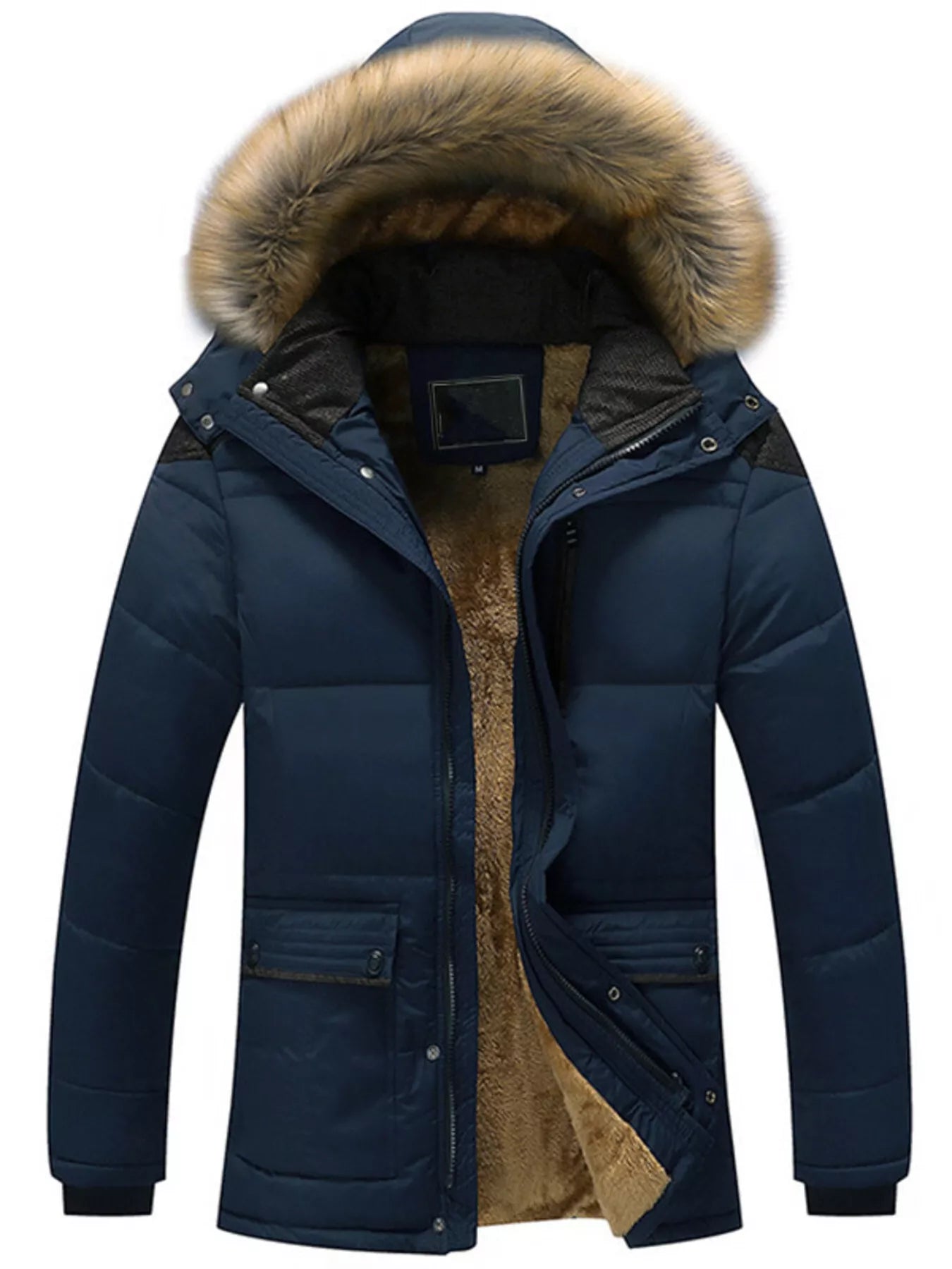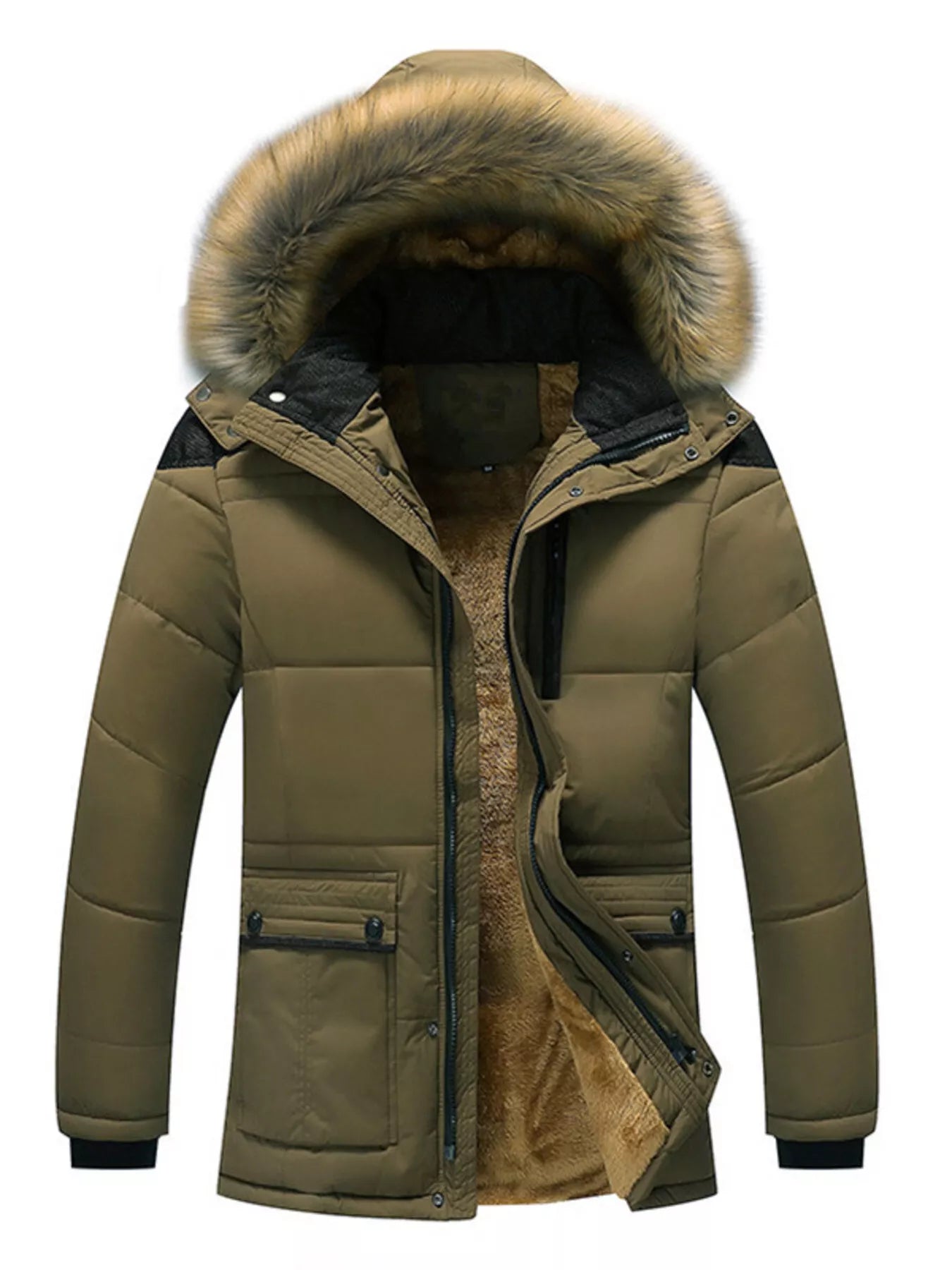 Men's Plus Size Fur Hooded Winter Parka Jacket