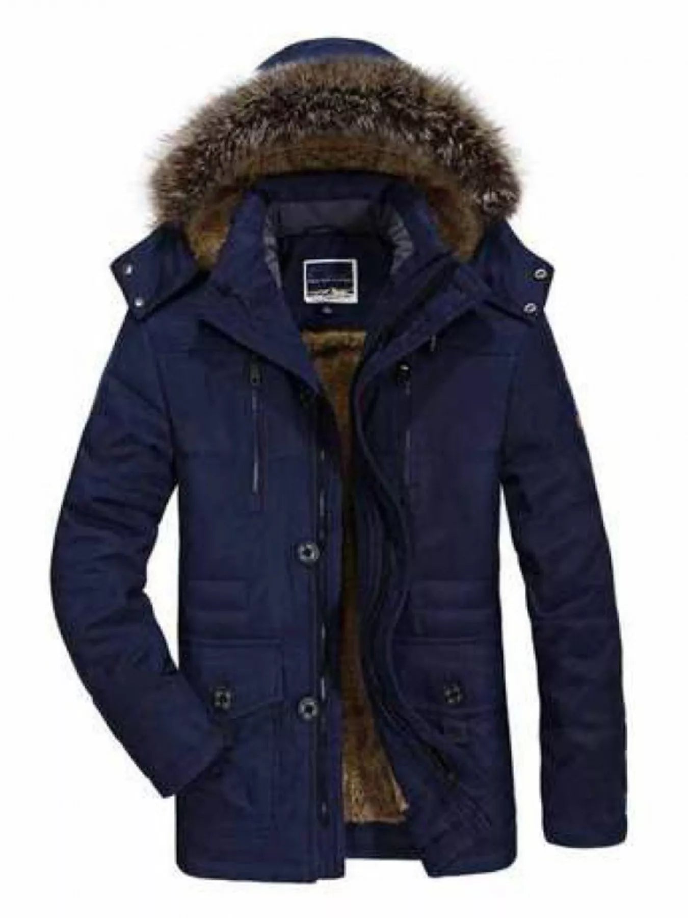 Men's Plus Size Fuzzy Hooded Zip Up Parka Coat