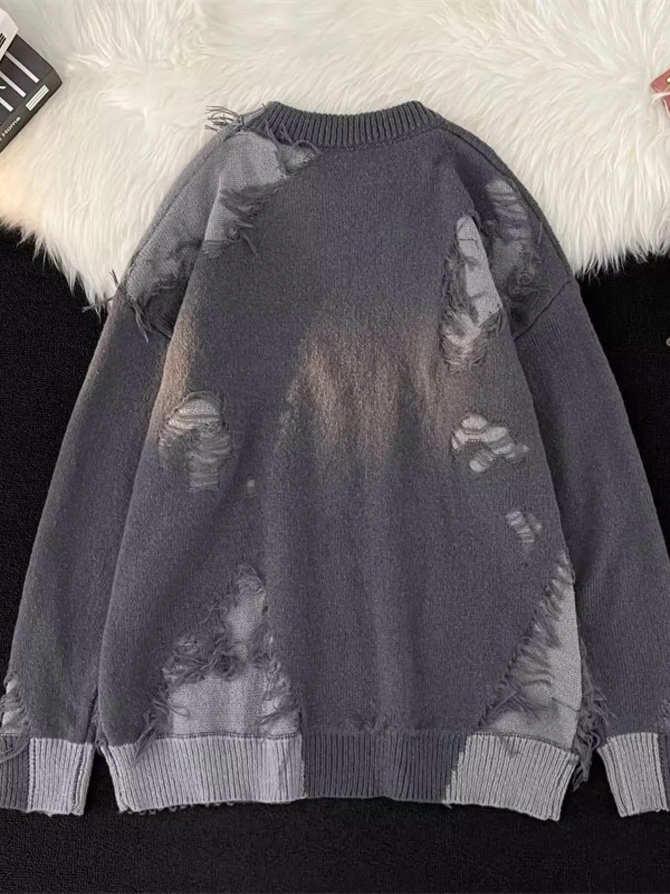 Men's Plus Size Distressed Round Neck Long Sleeve Sweater