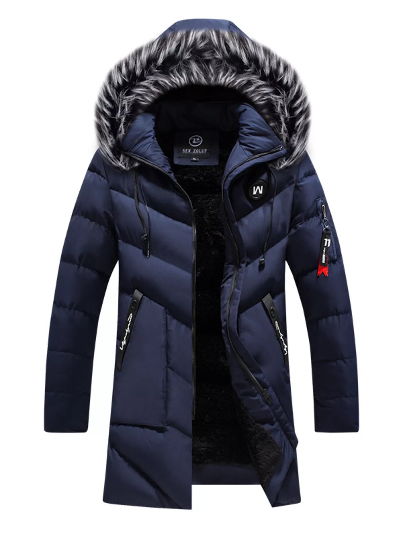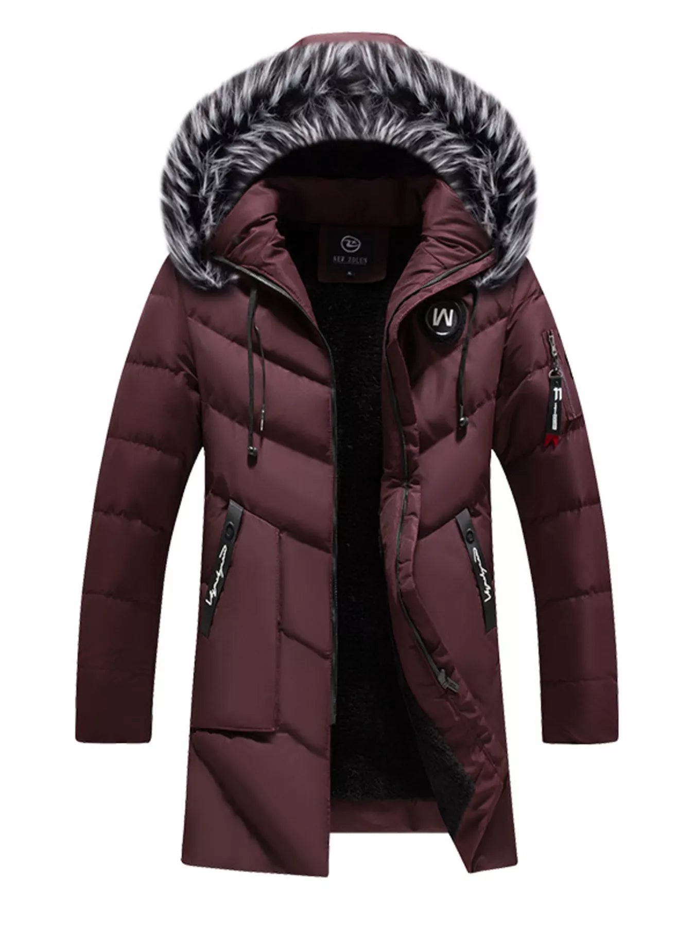Men's Plus Size Longline Padded Winter Coat with Faux Fur Hood