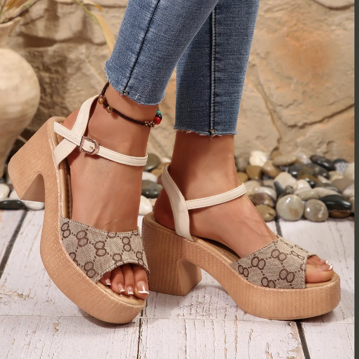 Open Toe Block Heels Sandals