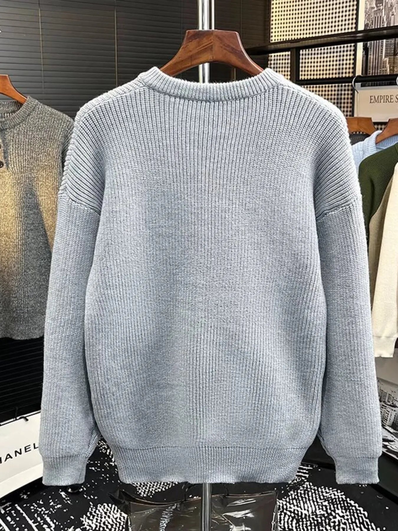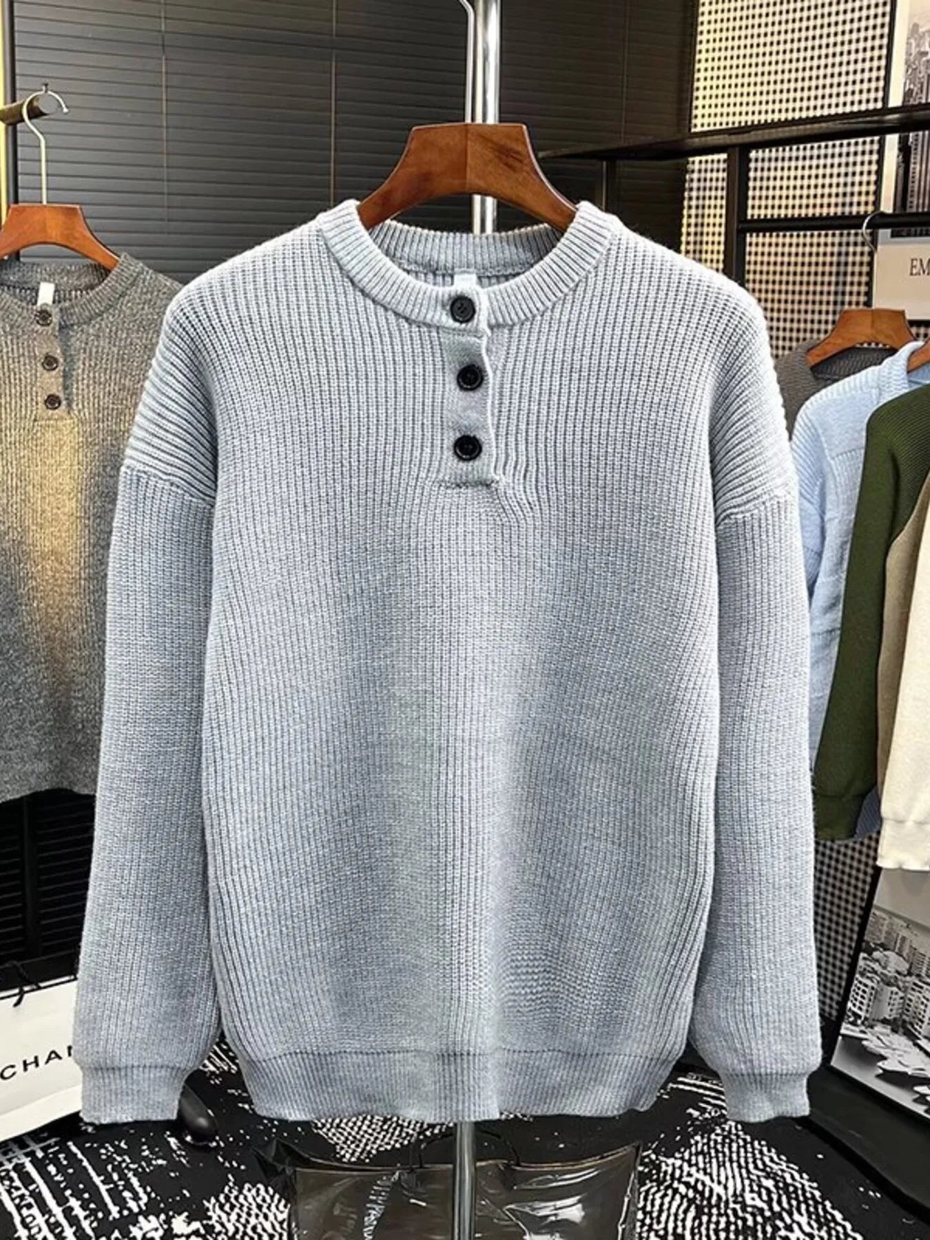 Men's Plus Size Button Detail Dropped Shoulder Sweater