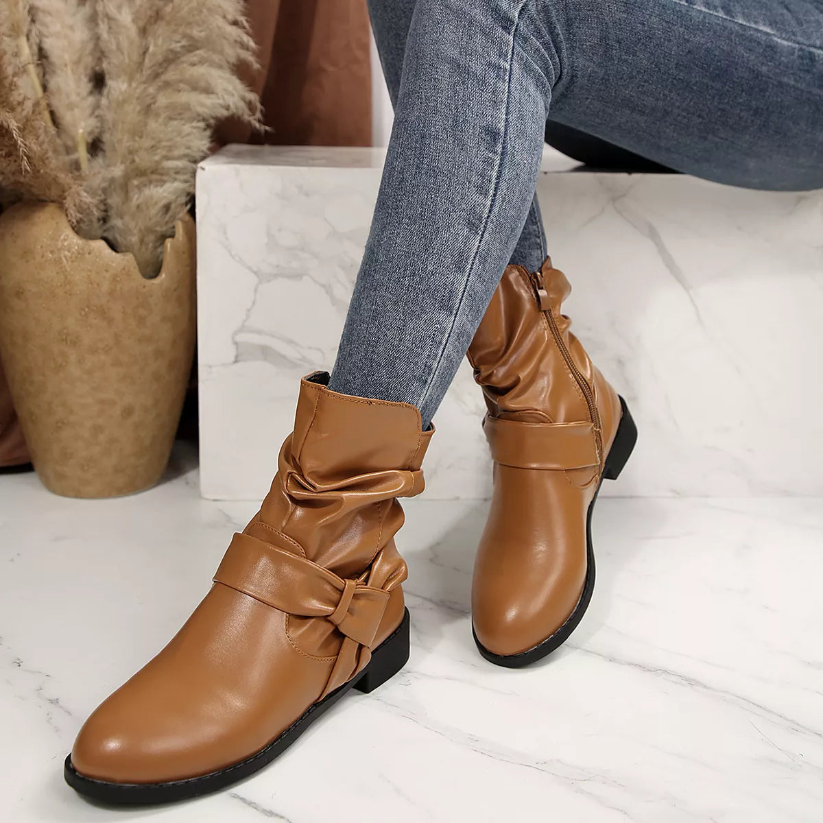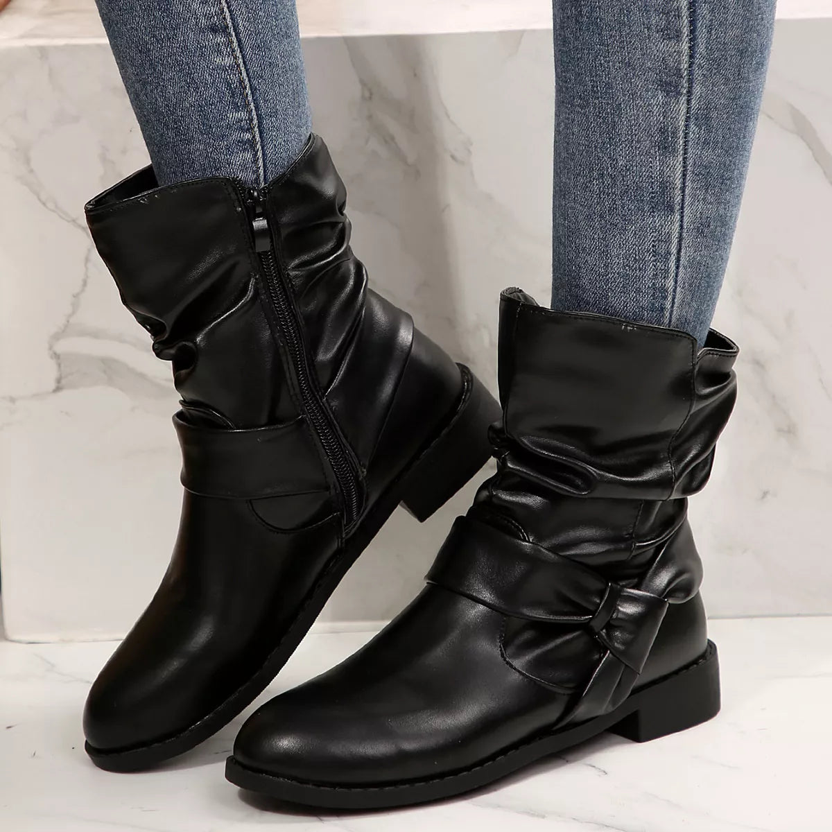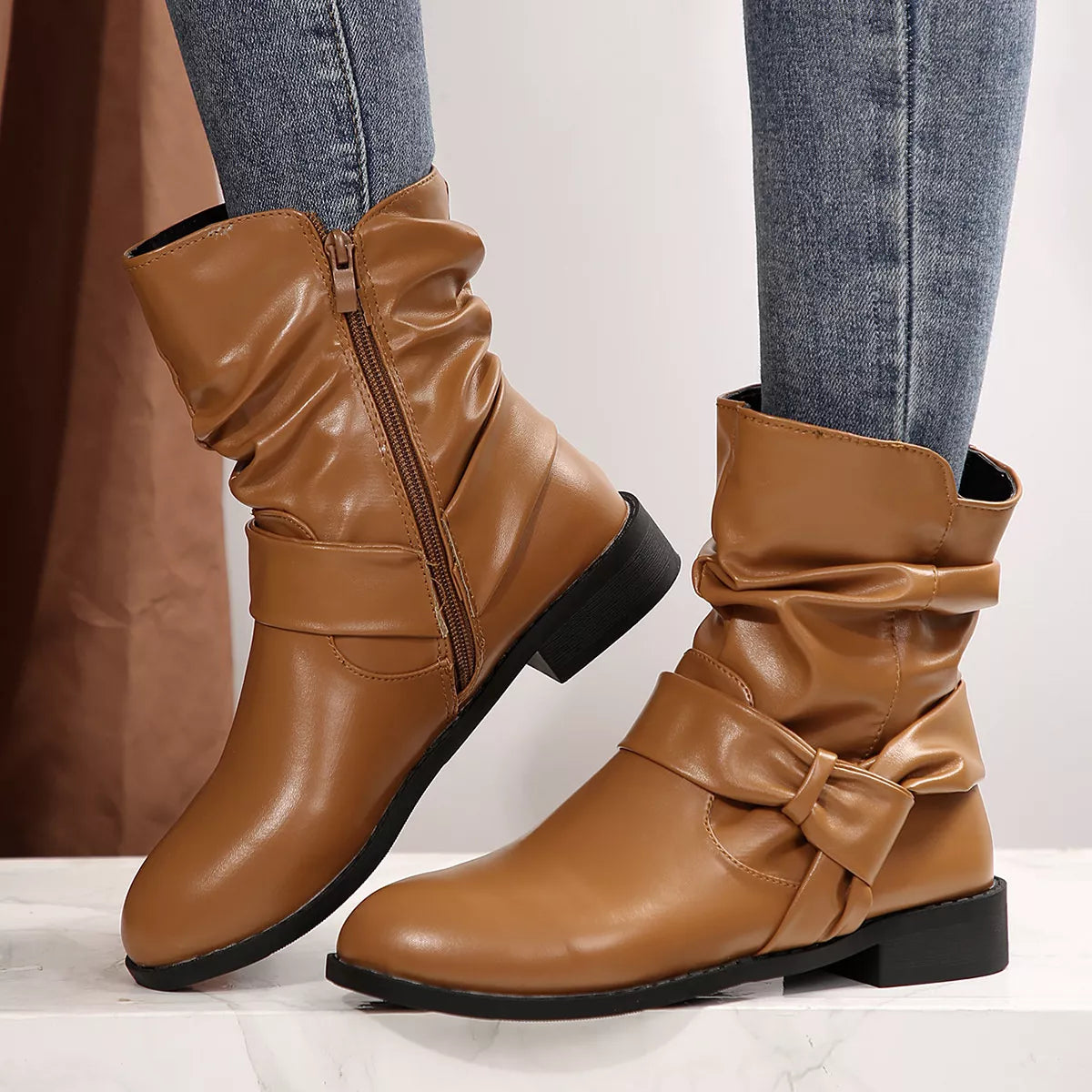Round Toe Low Heel Boots