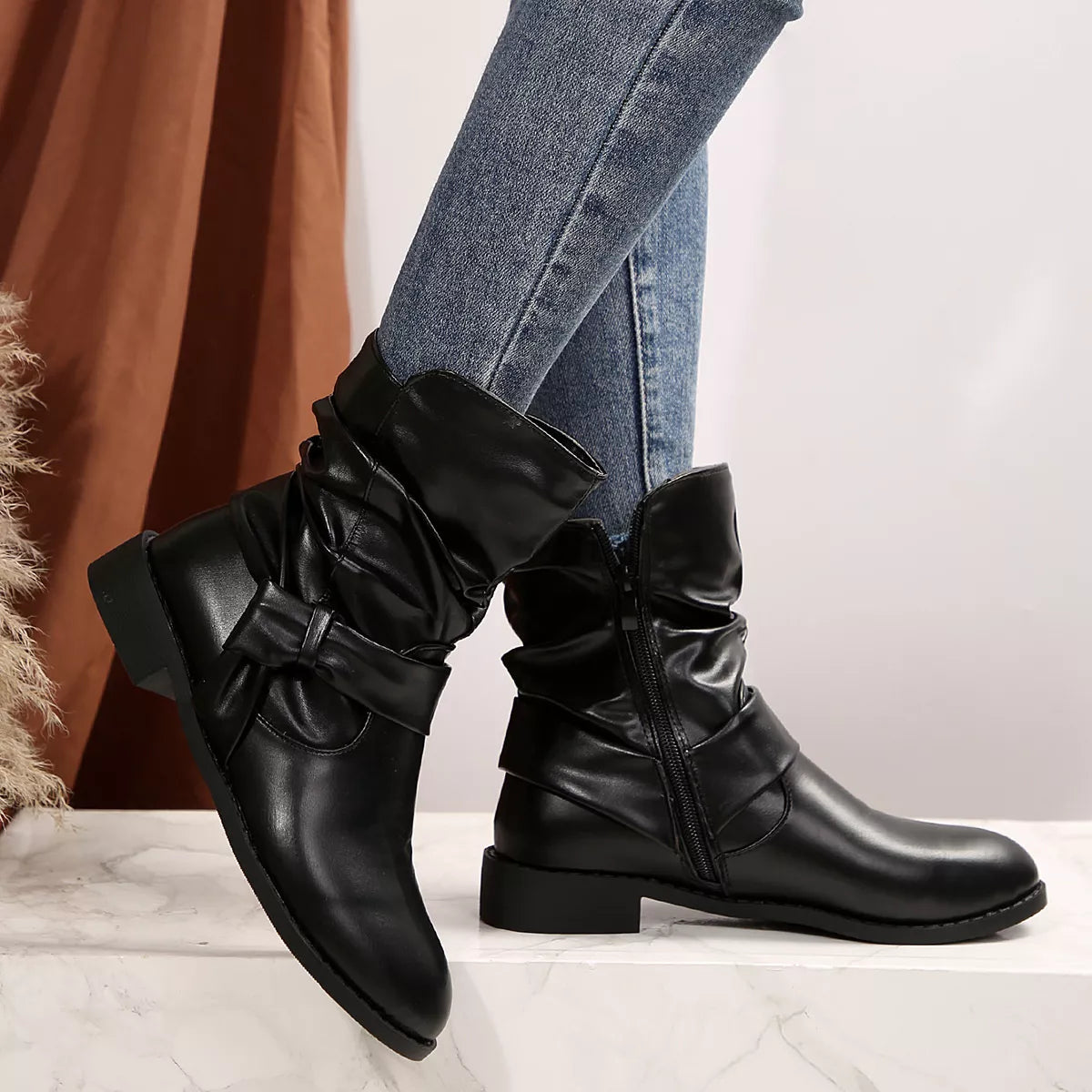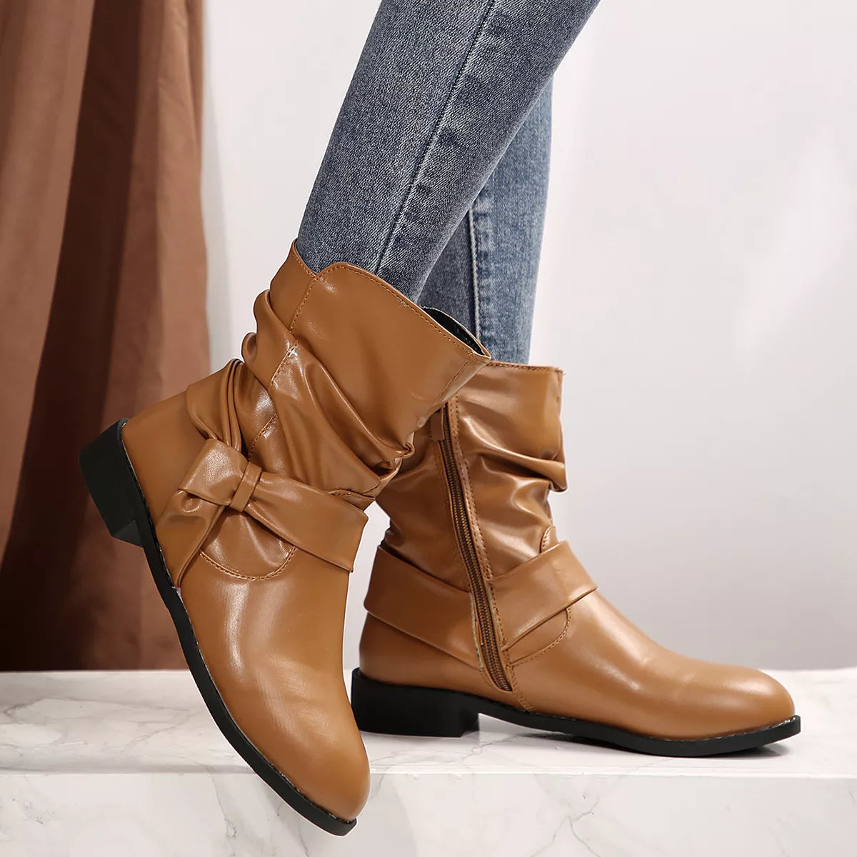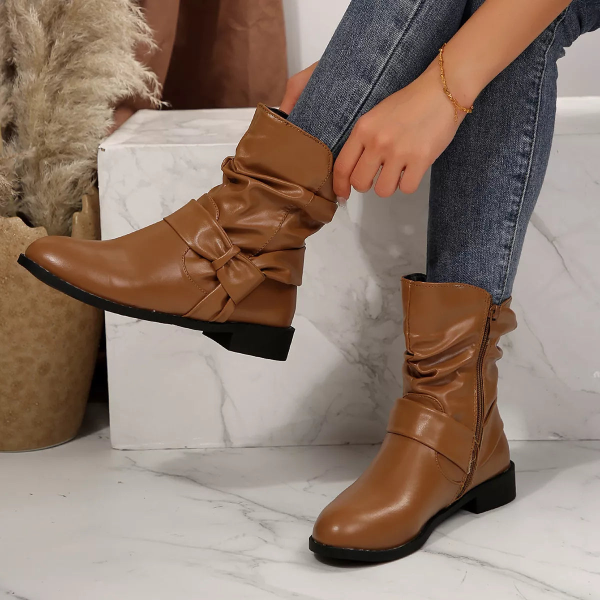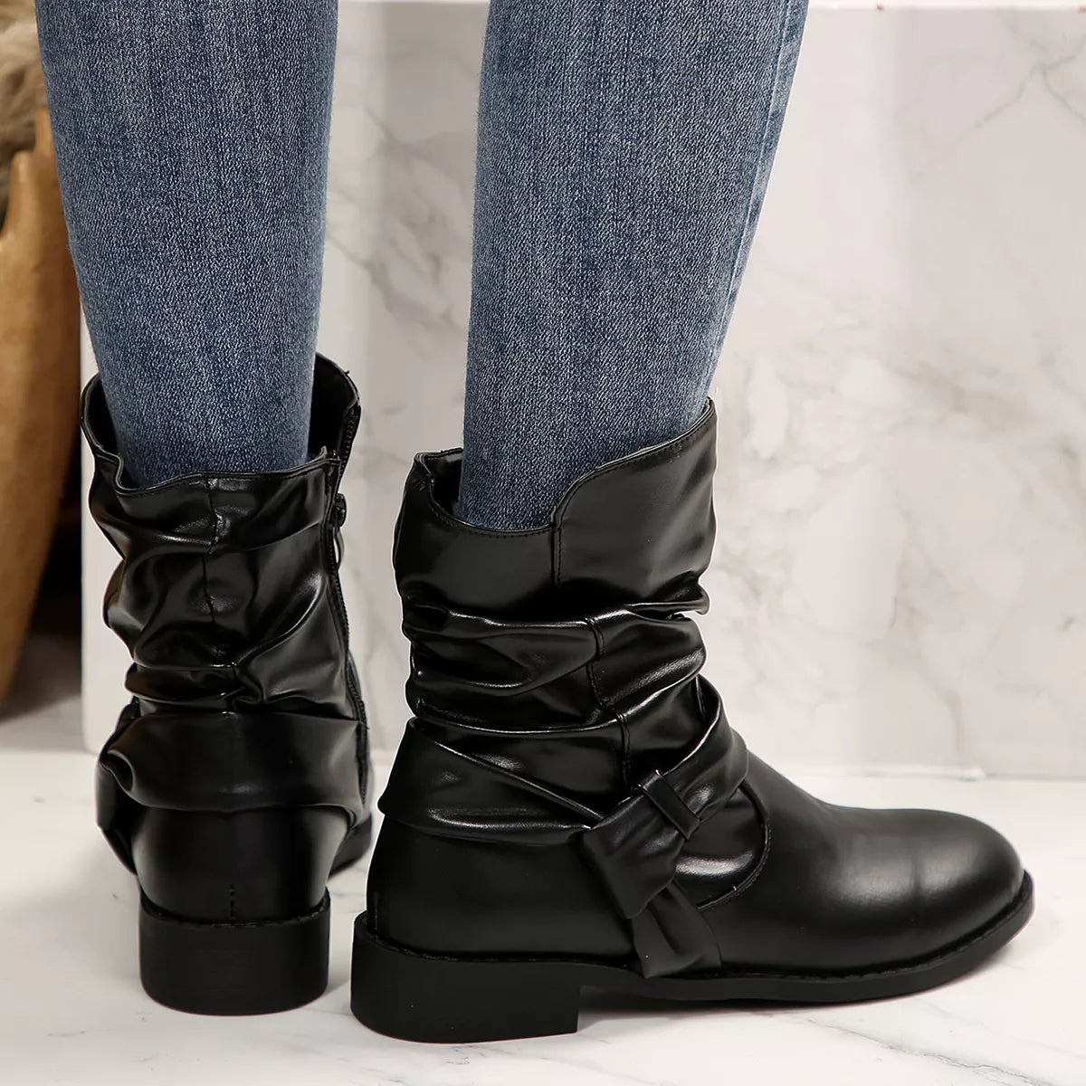 Round Toe Low Heel Boots
